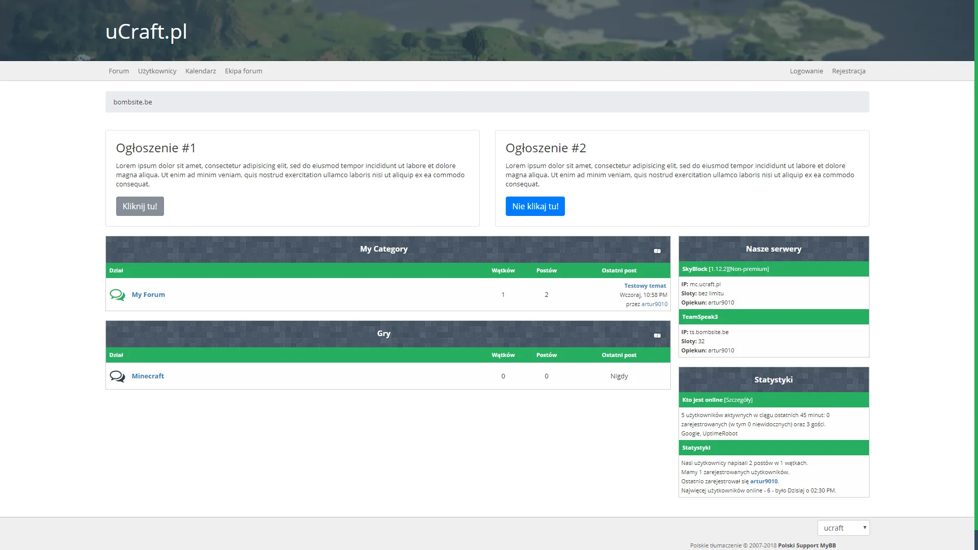 Motyw stworzony na potrzeby dawnego forum uCraft.pl. Posiada kilka drobnych wad (jak ściśnięte ikonki w edytorze) aczkolwiek komuś może się przydać.